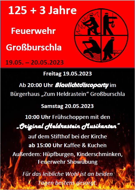 Die Feuerwehr Großburschla feiert ihr Jubiläum 125 Jahre + 3!