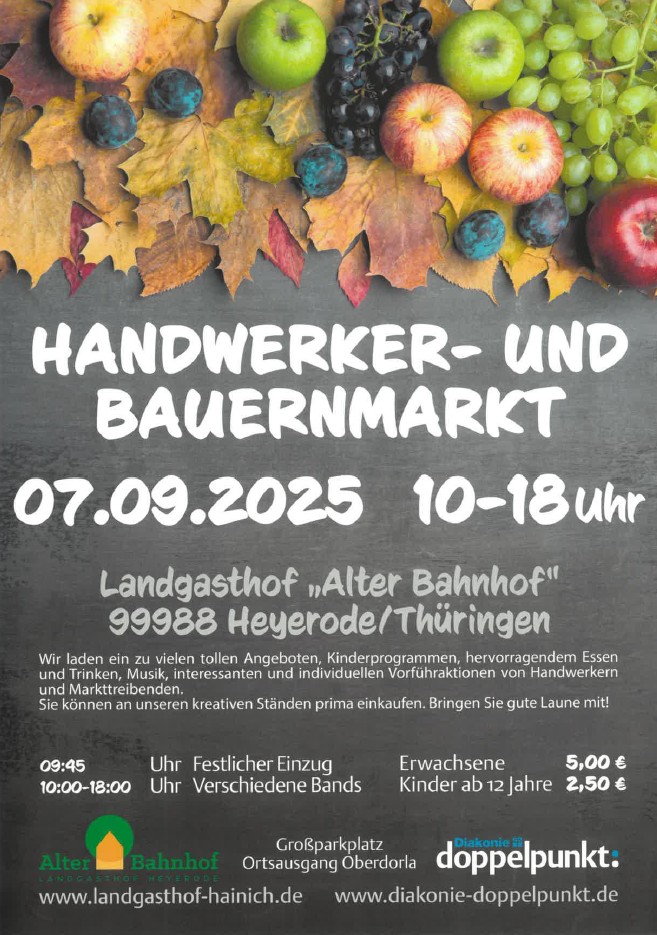 Der Landgasthof Alter Bahnhof und die Dakonie-Doppelpunkt landen zum Handwerker- und Bauernmarkt ein.